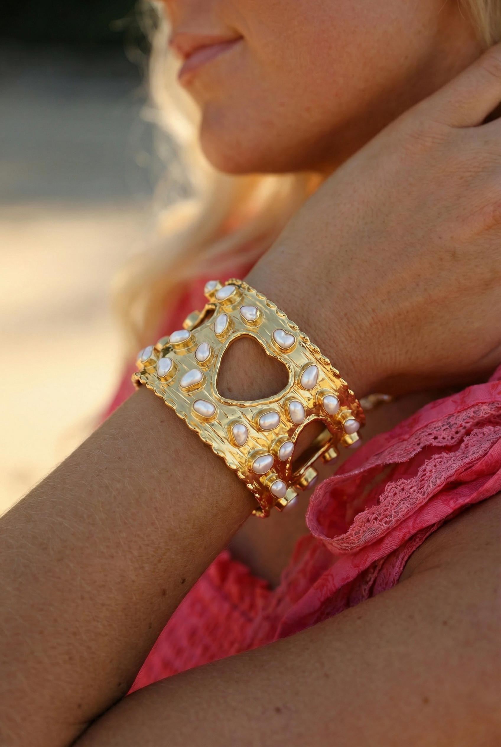 • ☼ Freshwater pearl cuff with 18k gold PVD hardware