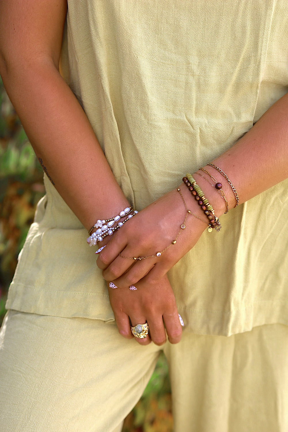 The Olive Bracelet is a nod to earthy elegance with a coastal twist. Designed with smooth green stone beads and elevated gold accents, this bracelet captures the essence of fall’s harvest tones while keeping the breezy, sunlit charm of seaside jewelry. Its versatile olive hue pairs beautifully with neutrals, whites, and gold layers, making it a timeless staple for every season.